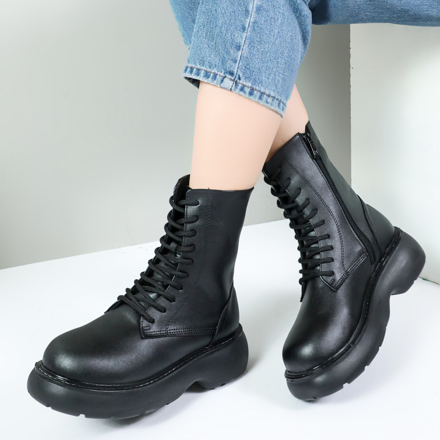 بوت زنانه رنگ مشکی بندی ساق بلند نیرا کد 75075
