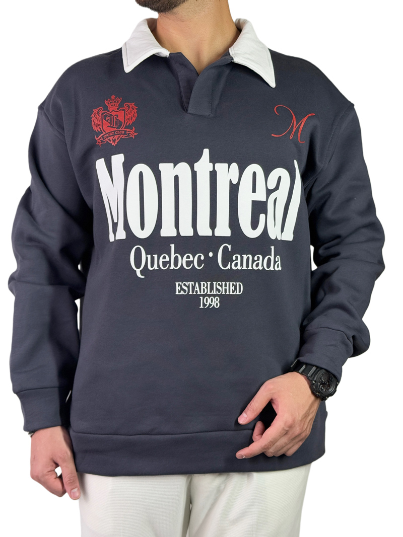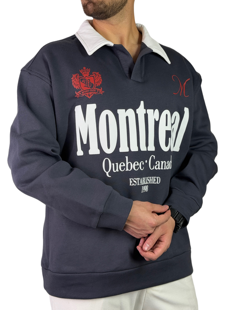 پلیور دورس مردانه سه نخ مدل یقه کوبا مونترال رنگ خاکستری کد 0339