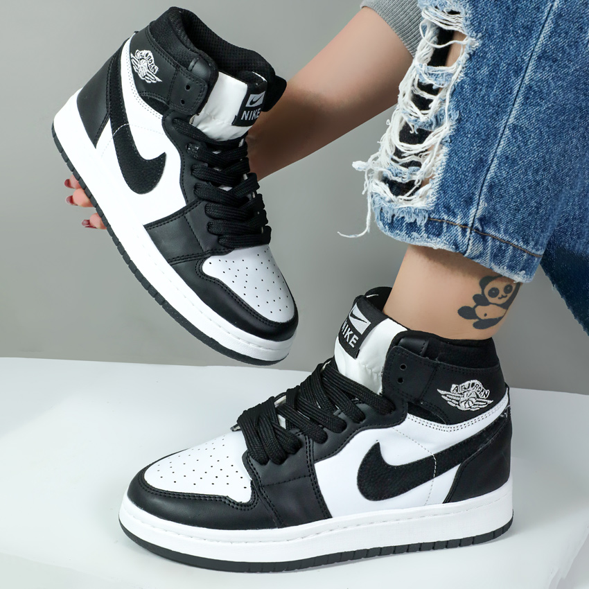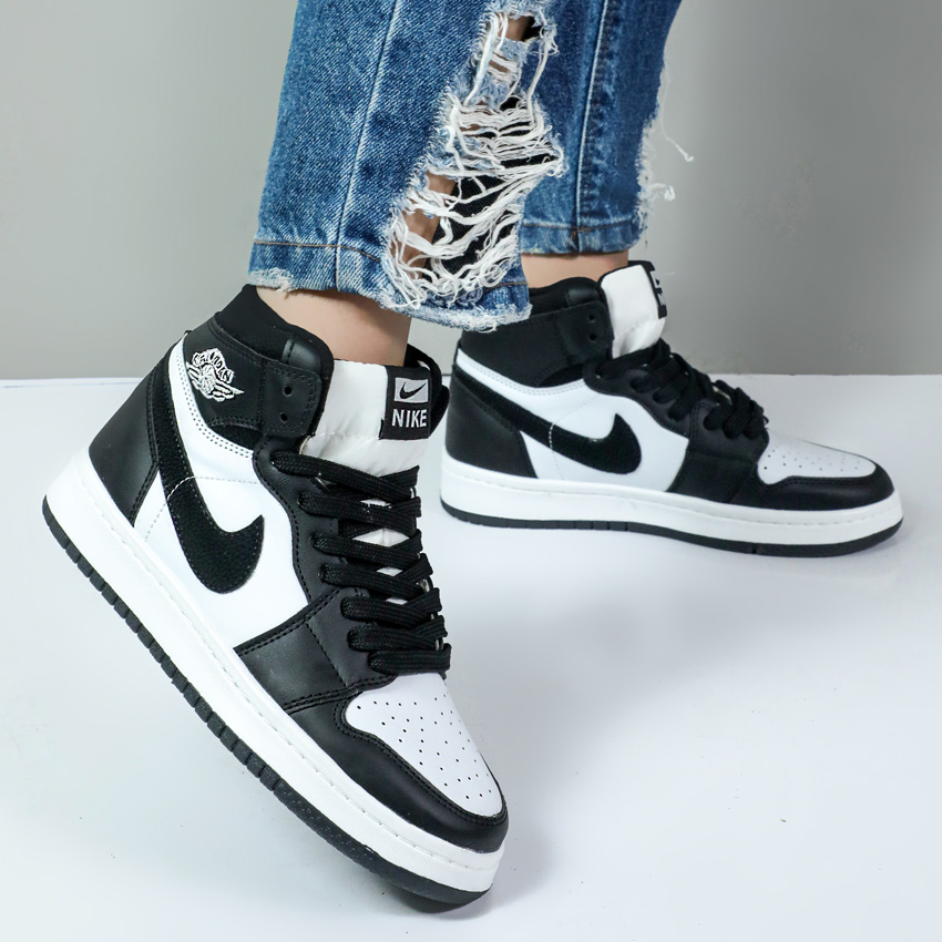 کتونی ساقدار زنانه مدل جردن ایر وان jordan air رنگ مشکی سفید کد 54467