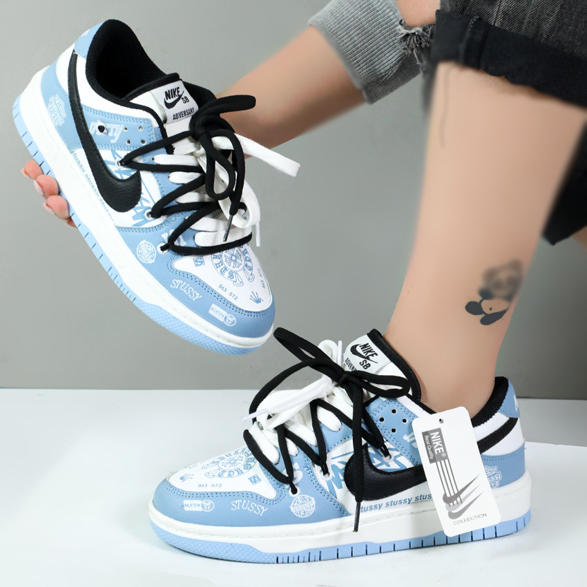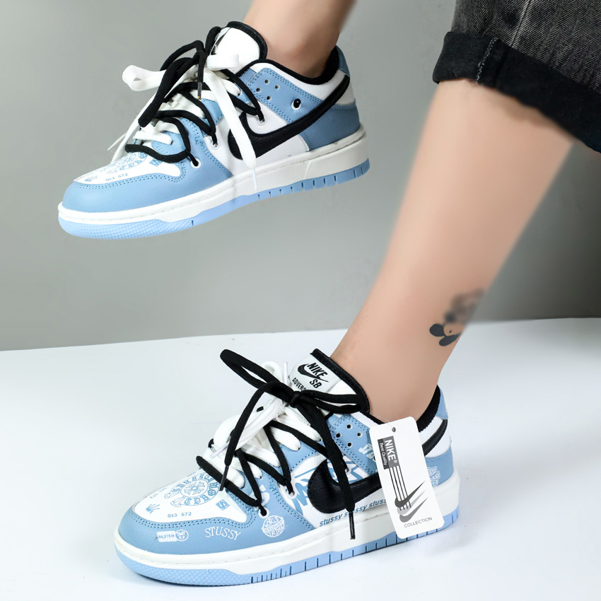 کتونی نایک زنانه مدل دو بند stussy آبی سفید کد 001683