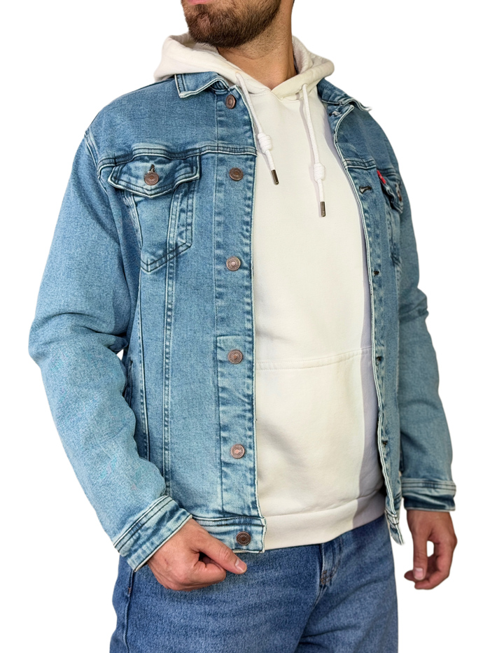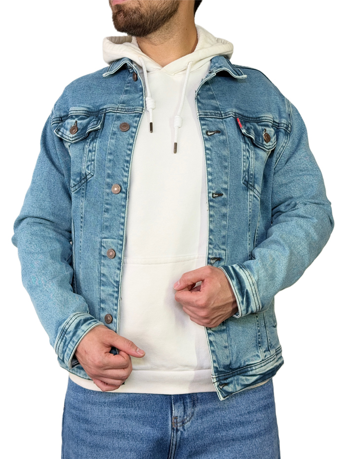 کت جین مردانه گرم بالا کاپشن رنگ آبی روشن کد 00345